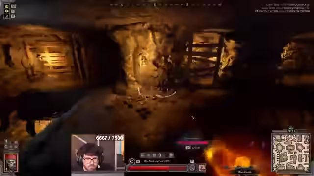 05:25:10Die Konzentration verlagert sich auf das Beseitigen von PvE-Gegnern, insbesondere eines Vilas, der als schwierig eingestuft wird. Während des Kampfes wird festgestellt, dass Pfeile fehlen, um den Gegner alleine zu besiegen. Man entscheidet, sich in der Hütte zu versammeln und Ressourcen wie Heilung und Seelen zu sammeln. Man findet neue Gegenstände wie eine blaue Arcane Gloves und macht sich auf den Weg zum nächsten Raum.