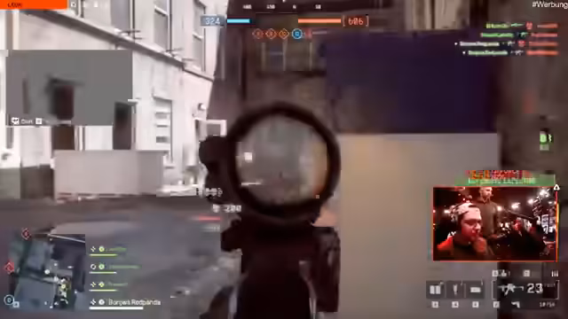 02:23:22Die Spieler befinden sich mitten in intensiven Gefechten, bei denen das Einnehmen von Punkten wie C und D im Vordergrund steht. Es wird diskutiert, ob bestimmte Aktionen, wie ein Roadkill mit einem Helikopter, möglich sind. Ein Spieler berichtet, C eingenommen zu haben, während ein anderer sich auf D konzentriert. Die Präsenz feindlicher Panzer und Helikopter erschwert das Vorankommen erheblich, wobei der gegnerische Helikopter als besonders dominierend und unfair wahrgenommen wird, da er dem eigenen Team anscheinend überlegen ist und das Gameplay stark beeinflusst. Die Spieler versuchen, strategisch vorzugehen und sich gegenseitig zu unterstützen, um die Punkte zu halten und den Gegner zu bekämpfen.