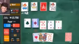 02:09:14Matteo stellt fest, dass die verbleibenden Herz-Karten bei weitem nicht ausreichen, um das benötigte Punktemaximum zu erreichen. Er betrachtet alternative Spielweisen wie einen Flush mit nur ungeraden Karten, aber die verfügbaren Karten reichen nicht aus, um eine effektive Hand zu bilden. Es wird klar, dass das Ziel der Runde nicht mehr erreicht werden kann.