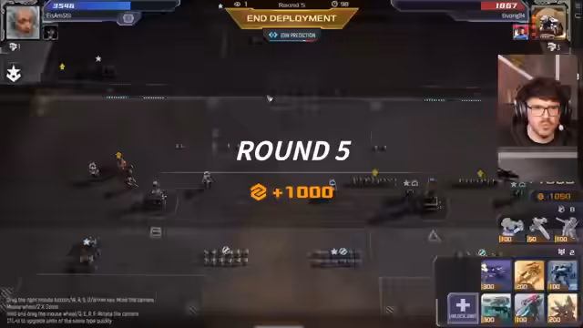 00:03:01Der Streamer und seine Mitspieler erleben ein gemischtes Matchverlauf. Sie gewinnen Runden hart gegen Gegner mit schweren Einheiten wie Rhino und Stormcaller, verlieren aber auch knapp durch Timing-Probleme oder Gegenstrategien. Der Streamer zeigt analytisches Geschick, indem er seine Fehler reflektiert und wie seine Einheiten durch falsche Positionierung in eigenen Fallen laufen. Trotz der Rückschläge bleiben sie motiviert und feiern kleine Siege, wie das Erreichen von 1.177 MMR.