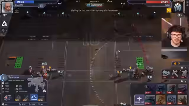 00:01:16Die Streamer werden in den ersten Minuten von einem anderen Kanal geraidet. Sie entspannen sich und spielen entspannt Mechabellum zusammen. Die Stimmung wechselt zwischen Verzweiflung und Faszination. Es entwickelt sich eine dynamische Kooperation, bei der sie sich gegenseitig strategisch beraten, ohne zu viel zu 'backseaten'. Entscheidungen treffen sie schnell, um den eigenen Standort zu sichern und sich gegenseitig zu unterstützen, was zu ersten erfolgreichen PvP-Fights führt.