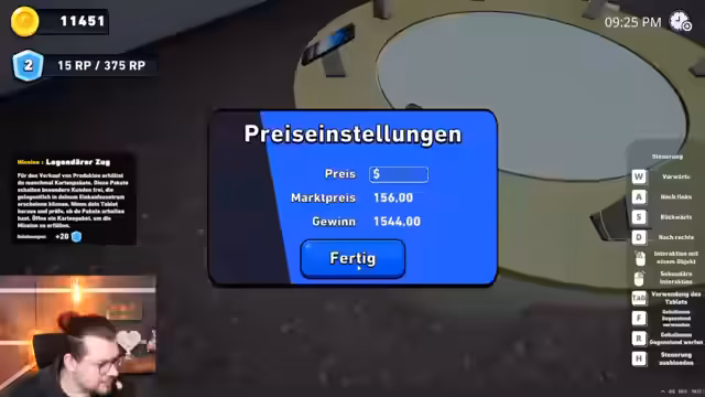 00:49:03Der Streamer vertieft sich weiter in das Spiel Mall Manager Simulator und versucht, seine Mall profitabler zu gestalten. Er optimiert seine Verkaufspreise und stellt fest, dass er durch das massenhafte Verkaufen von Handys gute Gewinne erzielen kann. Gleichzeitig muss er mit ständigen Problemen wie langen Warteschlangen und dem Auftauchen von Clowns umgehen, die sich mit einer Geldpistole vertreiben lassen. Am Ende des Tages schreibt er einen Verlust, ist aber mit dem Verlauf zufrieden und sieht Potential in der Vollversion.