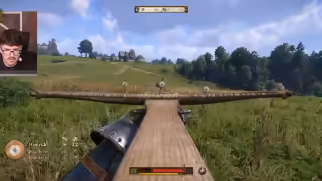 06:29:23Der Streamer setzt das Kingdom Come-Spiel fort und will die letzte Quest nach "Herrn Semin" abschließen. Er bemerkt, dass es "lange nicht mehr gespielt" wurde und denkt an die "Verkackung" der Quest beim letzten Mal. Er lädt einen Spielstand von "0 Uhr 18" und will den Kampf gegen den "Vogt" in "Troskowitz" machen. Dabei erwähnt er, dass sie "114 Verbrecher rechtmäßig enthauptet" haben und der "Vogt" sie wegen "Mordes" anklagen will. Der Streamer beschließt, zu kämpfen, anstatt die Strafe von 16.000 Groschen zu zahlen.