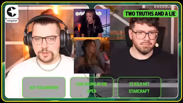 03:45:37Der Streamer kündigt eine Kooperation mit Kongstar für eine NPC-Kampagne an, bei der positive Erlebnisse aus der Gaming-Community eingereicht werden können. Die ausgewählten Geschichten werden bei einem Offline-Drehtag in Köln verfilmt. Als interaktives Element wird das Spiel 'Two Truths and One Lie' eingeführt, bei dem die Streamer zwei wahre Geschichten und eine Lüge erzählen und die anderen raten müssen, welche die Lüge ist. Das Format dient als Promotion für die Kampagne und unterhält die Community.