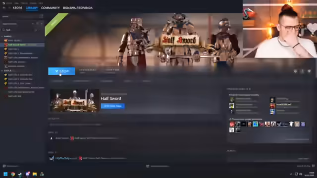 00:52:21Der Streamer befindet sich in einer kreativen Krise und unsicher, was er streamen soll. Er erwähnt mehrere neue Spiele, darunter Monster Train 2, No Rest for the Wicked, Tiny Auto Nights und überlegt PUBG oder Pokémon Nuzlocke. Schließlich entscheidet er sich spontan für eine Demo von Half-Sword, einem etwas seltsamen Spiel, bei dem man mit einem Schild und Fäusten kämpft. Er versucht, Bossgegner zu besiegen und interagiert dabei viel mit dem Chat, der Wetten auf seinen Erfolg abschließt. Die Steuerung des Spiels empfindet er als ungewöhnlich und umständlich.