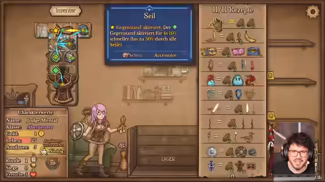 00:10:36In den späteren Runden konzentriert sich der Streamer darauf, starke Kombinationen zu finden und zu optimieren. Es wird der Wunsch nach einem 'Gubert' und 'Stahlschlotzbär' als Kern des Builds geäußert. Der Versuch, diese Items mit Schnüren zu kombinieren und die Aktivierung zu beschleunigen, führt zu komplexen Bauplänen. Es gibt Diskussionen über die Effekte von Gegenständen, insbesondere wie das Schaden-Plus-5%-Item des 'Stahlschlotzbär' funktioniert, ob pro Treffer oder pro Stern-Slot. Mehrere Runden werden verloren, während die Build-Optimierung voranschreitet und das Gameplay anspruchsvoller wird.