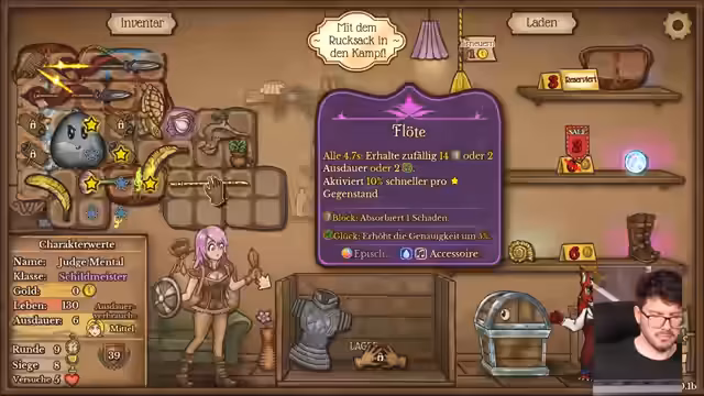 00:00:00Der Stream beginnt mit dem Spiel Backpack Battles. Der Streamer und Matteo spielen eine kurze Runde, da sie sich nicht auf einen Spielmodus einigen können. Zuerst werden die Regeln und Gegenstände wie Beutel des Gebets und der Schnur erklärt. In der ersten Runde wird die Anordnung der Gegenstände im Rucksack optimiert, um bessere Kombinationen zu schaffen und einen Faden zu craften. Es werden Versuche unternommen, ein unbesiegbares Bild mit Dornen zu erstellen. Eine Wette wird eröffnet, die sich später als erfolgreich herausstellt und eine positive Erwartungshaltung schafft.