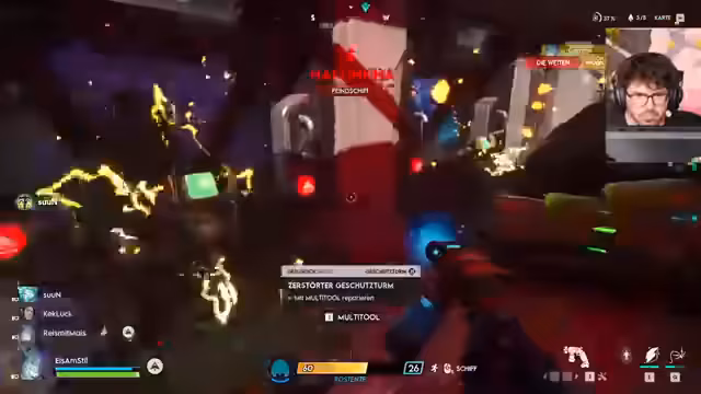 00:21:39Das Streamteam befindet sich in einem heftigen Raid, bei dem ein feindliches Schiff attackiert wird. Es kommt zu erheblichen technischen Problemen und Schäden, als das eigene Schiff gegen einen Flenstein prallt und an den Generatoren beschädigt wird. Der Streamer kündigt an, mit seiner Turbine erneut loszufliegen, während der Loot des gerade besiegten Schiffs gesichert wird. Die Entscheidung getroffen, sich erst wieder zu turnieren, bevor der Raid fortgesetzt wird.