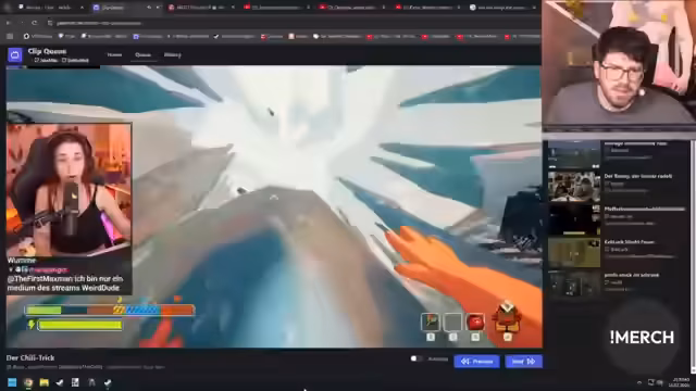 05:17:03Nachdem ein Jump'n'Run-Spiel gespielt wurde, kommen unerwartet persönliche Beobachtungen zur Sprache. Der Streamer gibt zu, dass er Frauen oft 'in ihren Ausschnitt' starren lässt und dies als 'völlig normal' oder als 'Problem' bezeichnet. Er erklärt dies damit, dass es vergleichbar wäre, wenn ein Mann seine Hosen öffnen würde. Der humorvolle, aber auch reflektierte Ton dieser Anekdote wechselt abrupt zu einem Clip über das Armdrücken auf der Gamescom, das als 'Date' beschrieben wird und auf einen bevorstehenden Vergleich mit Skouja anspielt.