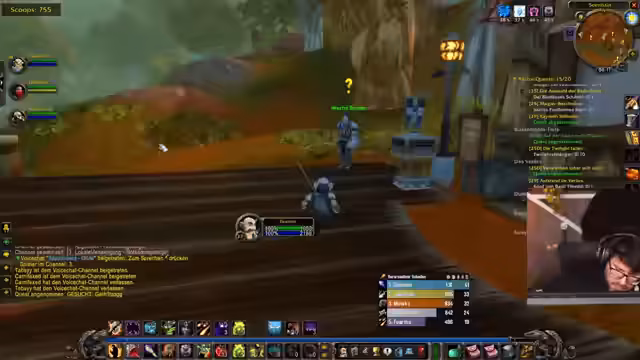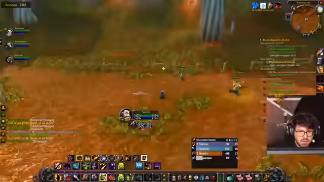 00:04:05Die Hauptsächliche Aktivität ist das Sammeln von Items für eine Quest, insbesondere 12 Gnolle und 5 Feuersteine von den Moorkrabbeln. Dabei wird gezielt auf strategisches Pullen von Gegnern geachtet, um Überforderung zu vermeiden. Ein unerwarteter PvP-Zwischenfall sorgt für Abwechslung, als ein gegnerischer Magier auftaucht und den Streamer verwandelt. Das anschließende Duell zwischen dem verwandelten Schaf und dem Magier endet tödlich und wird humorvoll kommentiert.