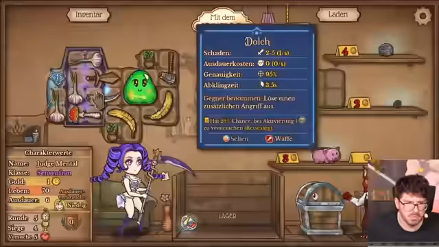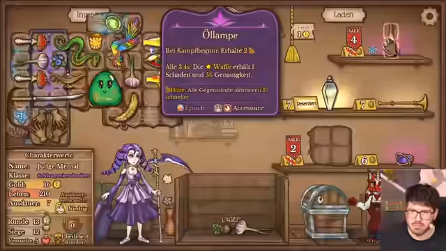 05:39:15Ein Trunk-Item, das alle 10 Sekunden einen zufälligen Trank-Effekt aktiviert, wird in den Build integriert. Dieses Item wird in Kombination mit verschiedenen Tränken als extrem stark eingeschätzt. Die Entwickler erkennen jedoch ein drastisches Platzproblem im Rucksack. Der Versuch, viele wertvolle Items wie den Schlotzbär, Giftdolch, Wunderlampe und verschiedene Tränke zu kombinieren, gestaltet sich als komplex und ineffizient, da nicht alles gleichzeitig sinnvoll platziert werden kann.