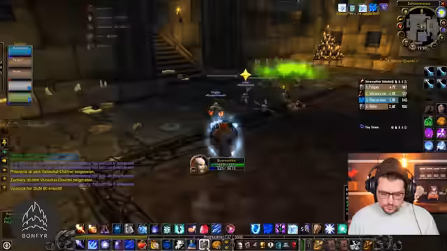 00:28:59Während des Farmens diskutiert der Streamer ausführlich über verschiedene Talentbäume für seinen Magier in World of Warcraft. Er analysiert Single-Target- und AoE-Skillungen, wobei er Fokus auf Frost-Zauber legt. Gleichzeitig organisiert er eine Gruppe für einen Dungeon, um weitere Ausrüstungsteile zu sammeln und beschwert sich über technische Probleme mit Gruppeneinladungen durch Fremde.
