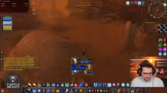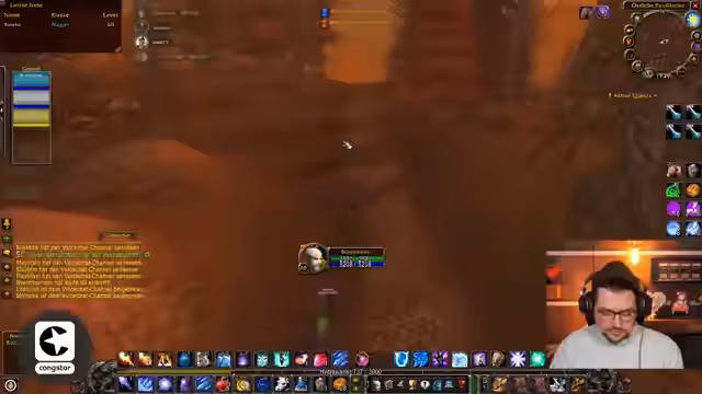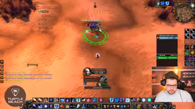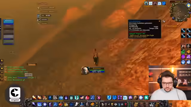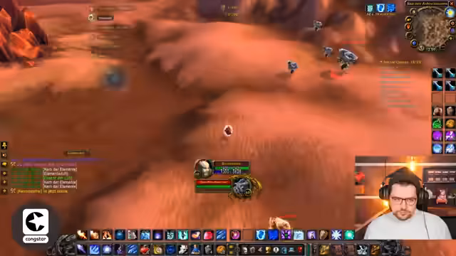 00:46:42Der Streamer koordiniert ein Gruppen-Event in der Silithus-Wüste, bei dem es darum geht, einen bestimmten Boss mit einer 25%igen Spawn-Chance zu besiegen. Er wartet auf den Streamer Han, der sich verspätet, und diskutiert mit der Gilde über den weiteren Plan. Der Fokus liegt darauf, schnell und effizient den Boss zu besiegen, um Zeit für spätere Aktivitäten zu haben.