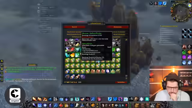 00:21:57Der Streamer wechselt in World of Warcraft, um Ausrüstung für seinen Magier zu farmen. Es geht konkret um die Best-In-Slat-Robe für die PvP-Arena. Er versucht, an das Rezept zu kommen und beginnt mit dem Sammeln der notwendigen Materialien,其中包括铁匠丝和符文布,但在获取这些资源时遇到了困难,导致搜索过程变得复杂和耗时。