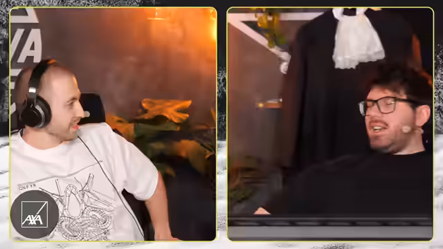 05:43:26Die Interaktion mit dem Chat und den anderen Spielern ist zentral. Als ein Viewer den Streamer darum bittet, Text-to-Sounds über beide Boxen zu spielen, scheint es technische Hürden zu geben, die am Freitag geklärt werden müssen. Höhepunkt dieses Abschnitts ist der Empfang von Zuschauer-Geschenken: Ein aufwändig gestaltetes T-Shirt mit dem Logo des fiktiven „Hohen Gerichts“ wird präsentiert. Der Streamer ist begeistert und plant, es zu hängen, was jedoch zu technischen Schwierigkeiten und einem Missgeschick führt, als er es fallen lässt. Die Stimmung bleibt dennoch positiv und humorvoll.
