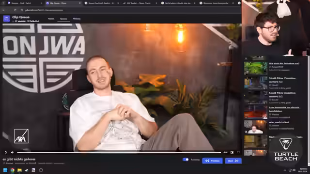 03:20:43Zurück im Alltag nach der intensiven Woche wird über alltägliche Probleme gesprochen. Dazu gehören peinliche Parkmanöver, Unannehmlichkeiten durch Headset-Dellen und die allgemeine Frustration über den Arbeitsalltag. Der Streamer reflektiert, ob er sich bei seiner Arbeit unterfordert fühlt, was zu einer Diskussion über seinen Beitrag und seinen Status innerhalb der Einheit führt. Diese Passage zeigt den Kontrast zwischen den heldenhaften Einsätzen und dem normalen, teils banalen Leben der Soldaten.