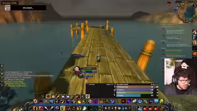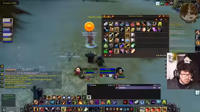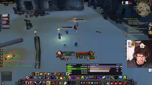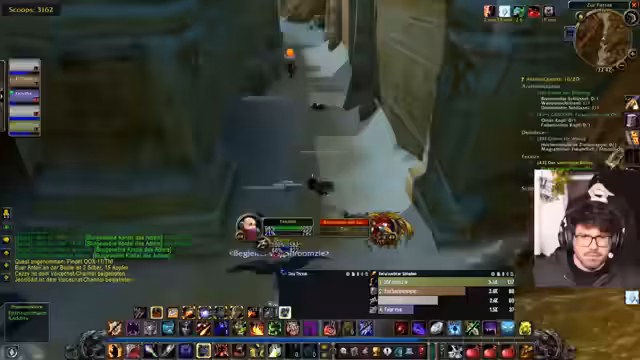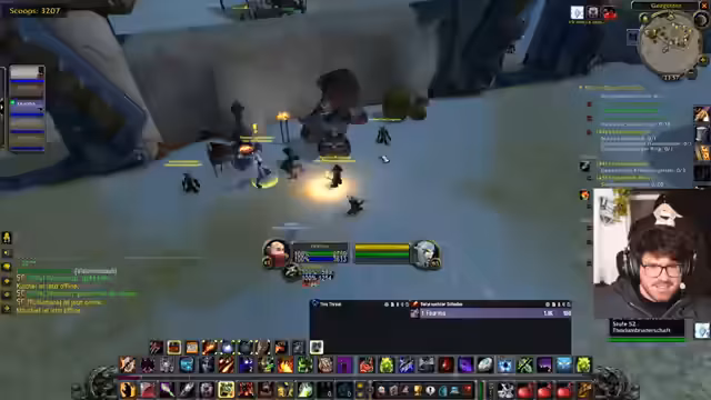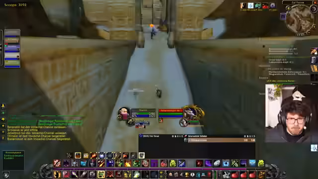 06:19:03Die Vorbereitung für den geplanten Dungeon-Run wird konkretisiert. Da ursprünglich geplante Mitspieler nicht zur Verfügung stehen, wird eine neue Gruppe zusammengestellt. Sie besteht aus dem Streamer, den Spielern Kaddi als Heilerin, Edo als Schattenpriester, und Schroomz. Der Streamer erwähnt auch den Spieler Leon, der sich jedoch bereits in einer anderen Gruppe befindet. Es herrscht eine Aufbruchstimmung, und es werden letzte Checks durchgeführt, bevor der gemeinsame Run beginnen soll.