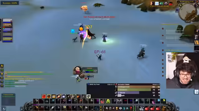 03:31:07Während des WoW Gameplays gibt es eine Diskussion über die Effektivität des Warlocks im Vergleich zu anderen Klassen. Der Streamer beschreibt, er sei am Limit und mache maximalen Schaden, während andere Teammitglieder untätig erscheinen. Dies führt zu einem persönlichen Rückschlag: sein Charakter stirbt, was er als extrem frustrierend und unfair empfindet, besonders da der Tod auf einem vermeidbaren Fehler basiert, während er in eine andere Unterhaltung vertieft war.
