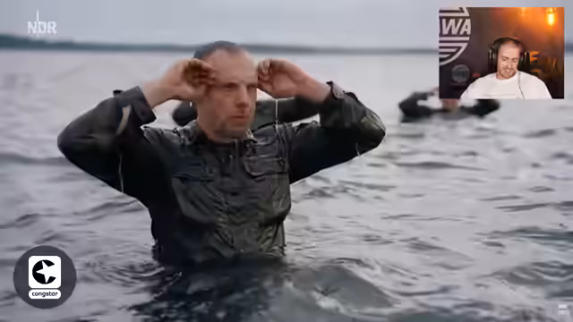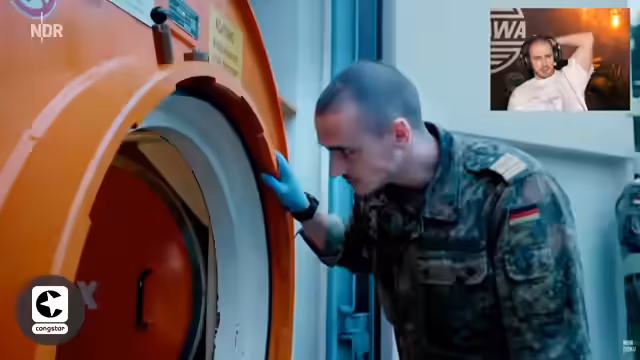 01:00:12Der Streamer widmet sich der Doku über die Mientauer der Bundeswehr. Er schildert, dass es sich um eine Eliteeinheit handelt, die das Suchen und Sprengen von Minen über und unter Wasser übernimmt. Er stellt die anstrengende, aber auch spaßige Ausbildung in den Vordergrund und provoziert dabei den Chat.