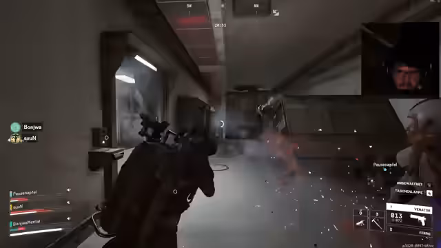 06:06:28Der Streamer und sein Team sind in einem Gebäude, das offenbar Ziel mehrerer Gegner ist. Zwei Gegner werden schnell ausgeschaltet, doch ein Teammitglied wird überraschend aus dem Hinterhalt getötet. Die Situation eskaliert, als weitere Gegner eintreffen, was zu einer chaotischen Auseinandersetzung führt, bei der das Team letztendlich unterliegt.