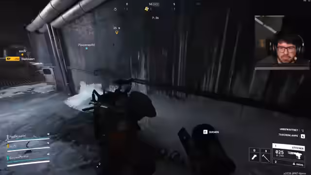 07:23:03Der Stream beginnt mit einem schwierigen Start in der Map, bei dem der Streamer sich ungewohrt in einer komplexen Umgebung bewegt und nach einer Batterie sucht. Nach anfänglichen Orientierungsproblemen gelingt es, die ersten Gegner zu eliminieren und eine strategische Falle mit einer Mine und einem Fass an einer kritischen Tür aufzustellen, um ein gegnerisches Team aufzufangen und auszuschalten.