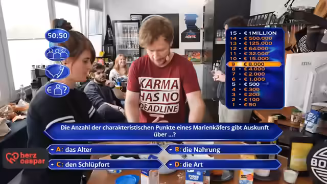 14:40:36Die Fragen werden immer schwieriger und die Teilnehmer haben Schwierigkeiten, die richtigen Antworten zu finden. Streamer entscheidet sich, den letzten Joker nicht zu verwenden, sondern stattdessen selbst eine Antwort zu geben. Er ist sich seiner Antwort unsicher, aber er bleibt dabei. Die Entscheidung wird heiß diskutiert, da sie das Ende des Spiels bedeuten könnte. Die Spannung steigt, während sie auf das Ergebnis warten.