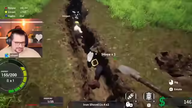05:36:35Es entwickelte sich ein Wettkampf, bei dem das Ziel war, ein Loch bis zum Rand der Karte zu graben, um einen freien Fall zu ermöglichen. Die Spieler erkannten, dass das Graben am Kartenrand den Vorteil eines geraden Falls bot. Strategien wurden entwickelt, um die Effizienz zu maximieren, einschließlich des Einsatzes von Dynamit und der Verbesserung der Spitzhacken. Es entstand ein Wettstreit zwischen den Spielern, wer zuerst den tiefsten Punkt erreicht, wobei der Ehrgeiz, die Spitzhacke auf das maximale Level zu bringen, im Vordergrund stand. Die Spieler teilten sich auf, um verschiedene Löcher zu graben, und es entstand ein chaotisches Durcheinander von Tunneln. Trotz der Herausforderungen und der engen Platzverhältnisse setzten die Spieler ihren Wettlauf in die Tiefe fort, angetrieben von dem Wunsch, als Erste den Boden zu erreichen.