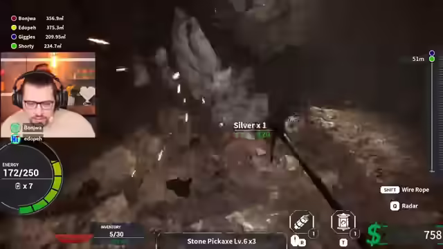 04:27:32Die Gruppe navigiert durch die Minen, wobei der Fokus darauf liegt, Kiara zu erreichen, die sich in einer schwierigen Lage befindet. Es gibt anfängliche Schwierigkeiten beim Aufsammeln von Items und beim Einsatz von Hilfsmitteln wie dem Shift-Wire-Rope, was zu Verwirrung und dem Verlust von Energie führt. Ein Mitglied der Gruppe opfert sich, um die anderen zu unterstützen, was jedoch zum Verlust von Ausrüstung führt. Trotzdem setzen sie ihre Rettungsmission fort und graben einen schrägen Gang, um Kiara zu erreichen. Es wird über die Möglichkeit gesprochen, das Wire Rope zu verbessern, um den Aufstieg zu erleichtern. Durch Teamarbeit und gegenseitige Unterstützung gelingt es ihnen schließlich, Kiara zu befreien, indem sie sich aufeinander stellen und sich mit Seilen hochziehen. Die Gruppe diskutiert über die Beschaffenheit der Umgebung und die Notwendigkeit, einen besseren Weg nach unten zu bauen, um zukünftige Probleme zu vermeiden. Es wird festgestellt, dass das Spiel Spaß macht und das Potenzial für das Entdecken von verlassenen Zivilisationen und Schätzen bietet. Ein Spieler entdeckt eine Pickaxe und Wire Rope, was die Navigation erleichtert.