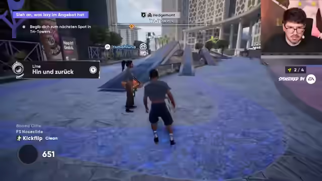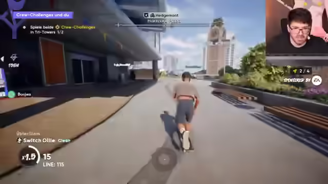 09:05:26Es wird über das Spielen von Horse in Skate gesprochen, ähnlich wie beim Basketball, wo man Tricks vorführt und der andere sie nachmachen muss. Scheitert man, erhält man einen Buchstaben. Es folgt die Absicht, zu einer markierten Challenge zu fahren. Einer der Spieler äußert Selbstbewusstsein im Spiel, während der andere das Tutorial gespielt hat. Es wird festgestellt, dass der Marker für die Challenge nicht angezeigt wird, was die Frage aufwirft, ob sie sich in einer Lobby oder Gruppe befinden. Die Spieler bezeichnen sich als 'Hanauer Skate Crew'. Es wird erklärt, dass man durch langes Drücken von 'Y' bei einem Marker eine Mission startet und Sachen freischaltet, ähnlich einer Kampagne. Einer der Spieler startet die Solo-Mission, während der andere zuschaut und mitfährt. Es wird über das Erfüllen von Zielen und das Solo-Starten der Mission gesprochen, da Team-Funktionen möglicherweise erst später verfügbar sind. Nach Abschluss der Mission wird über freigeschaltete Inhalte und den Shop gesprochen, wo man Outfits auswählen kann.