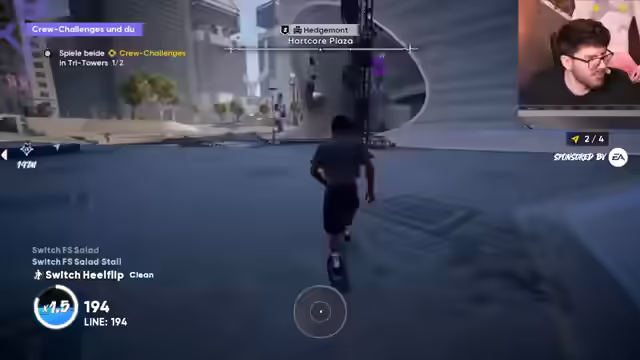 09:18:37Es wird über das aktuelle Level im Spiel diskutiert und wo man es finden kann. Beide Spieler scheinen dasselbe Level zu haben. Es wird überlegt, wie viel man noch alleine machen muss und ob man Missionen abbrechen und in der Open World chillen kann. Es wird festgestellt, dass man erst zusammen spielen kann, wenn beide Spieler die Crew-Challenges in Tree Towers abgeschlossen haben. Die Spieler begeben sich zu Tree Towers und klettern dort hoch. Es folgt ein Gespräch über die Stadt Hanau, wo einer der Spieler kürzlich war und Veränderungen festgestellt hat, insbesondere am Freiheitsplatz mit einem neuen Forum. Der andere Spieler erinnert sich an Hanau vor den Veränderungen. Es wird das Ziel besprochen, beide Crew-Challenges zu spielen, und es wird erklärt, wie man das Koop-Spiel startet. Nach anfänglichen Schwierigkeiten gelingt es, das Koop-Spiel zu starten und eine Aufgabe zu erfüllen, bei der Tricks vorgeführt und eine bestimmte Distanz gegrindet werden muss. Nach erfolgreichem Abschluss wird besprochen, zum nächsten Spot in Tree Towers zu gehen.