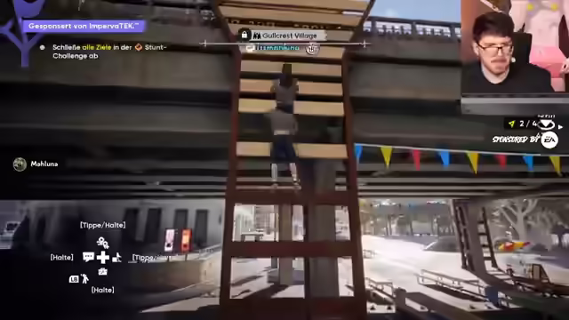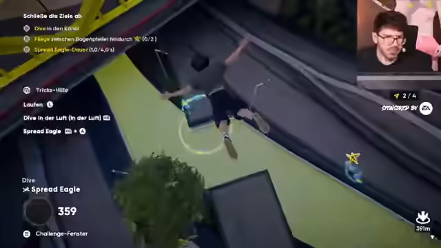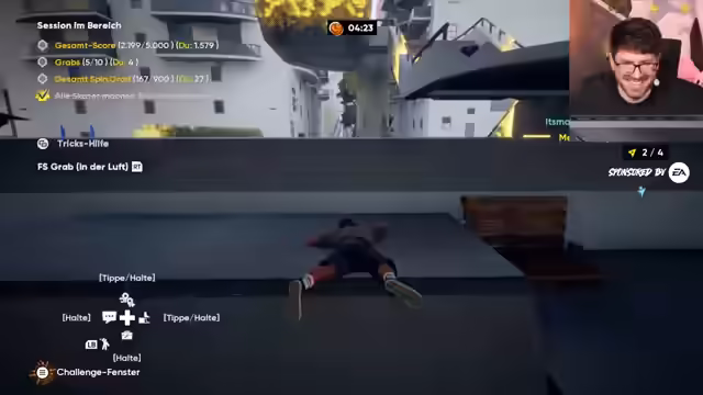 10:30:55Es werden neue Spielmechaniken und Herausforderungen erkundet, darunter das Klettern auf ein Hochhaus und das Herunterspringen. Eine neue Technik, die Gleittechnik, wird entdeckt und ausprobiert. Es wird festgestellt, dass diese Technik jedoch nicht auf dem Skateboard funktioniert. Nach dem Experimentieren mit verschiedenen Aktionen im Spiel wird betont, dass man im echten Leben nicht von Hochhäusern springen sollte und dies nur im Spiel sicher ist. Die neuen Ziele im Spiel werden erkundet und eine neue Herausforderung, das "Dive in der Luft, Spread Eagle", wird in Angriff genommen. Es wird versucht, diese Aufgabe zu meistern, indem man A gedrückt hält und RB benutzt, um auf einen der Kästen zu gelangen. Die Spieler versuchen, die Mechaniken zu verstehen und die Herausforderungen zu überwinden, um im Spiel voranzukommen.