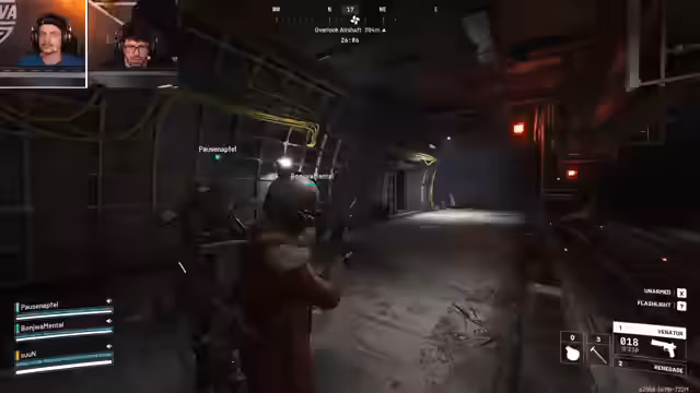02:57:48Während der Erkundung werden mehrere Rocketeer entdeckt, die eine ernste Bedrohung darstellen. Die Spieler entscheiden sich, ihre Position zu wechseln, um diesen auszuweichen. Dabei wird ein Exit aktiviert, aber sie bleiben noch auf der Karte, um weiter zu looten. Sie stoßen auf leichte Waffenteile und Granaten, doch der Platz im Inventar wird knapp. Die Suche nach einem besseren Standort und Loot ist fortwährend.