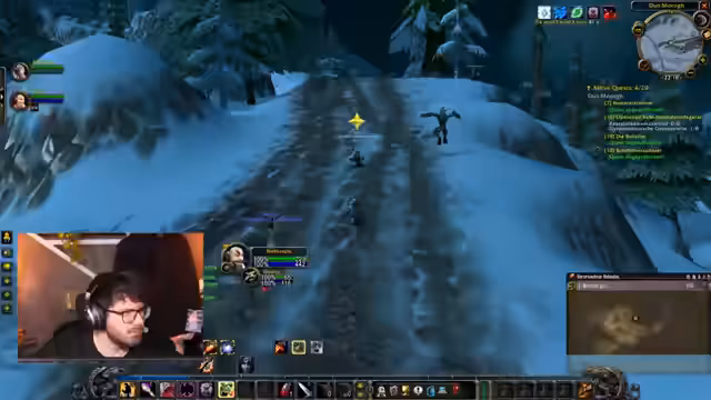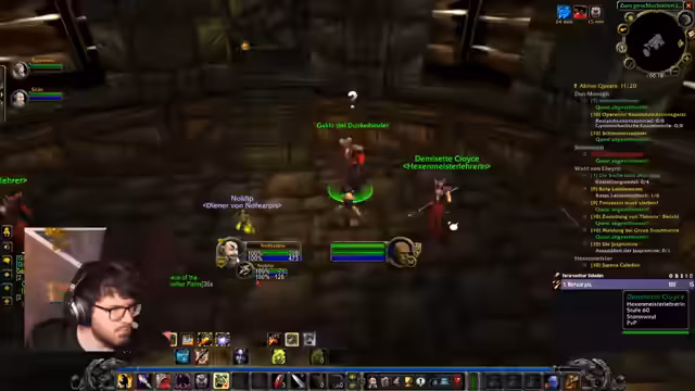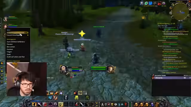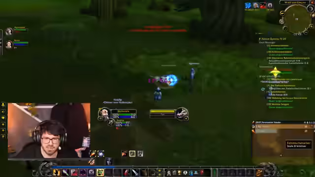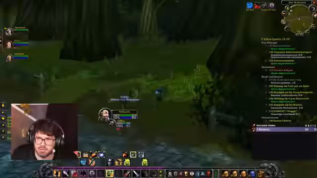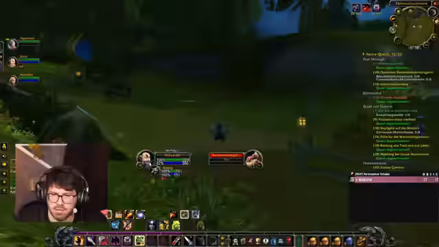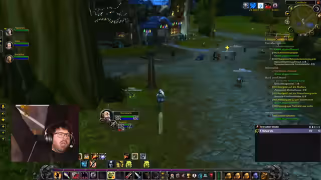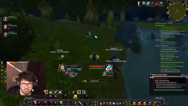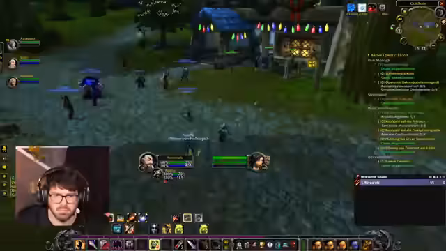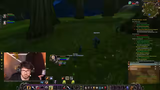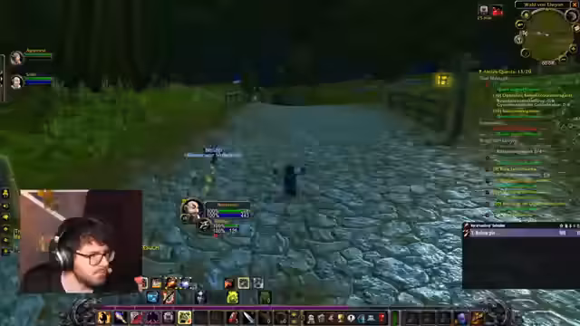 05:41:08Die Gruppe stellt sich dem berüchtigten Boss Hogger im Wald von Elwynn. Turi heilt als Paladin, während die anderen kämpfen. Nach einem erfolgreichen Kampf wird Hogger erneut spawnen und einen Gruppenmitglied töten. Es folgt eine Diskussion über die Questabgabe von Hogger und weiteren Quests im Osten, die Turi noch nicht angenommen hat. Die Gruppe plant, nach Goldhain zurückzukehren, um Quests abzugeben und Ausrüstung zu verkaufen.