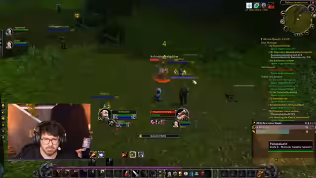 04:53:32Die Gruppe diskutiert ihre Klassenrollen und Levelziele. Turi plant als Paladin Heiler zu spielen und stellt fest, dass Healer gefragt sind. Es wird überlegt, ob man direkt Level 60 anstrebt oder erst entspannt startet. Dabei geht es um die Frage, ob Turi sich bereits mit Guides beschäftigt hat und wie sie ihre Fähigkeiten (Schwerter, Hämmer) einsetzen kann. Die Gruppe sammelt zwischenzeitlich Goldstaub von Kobolden und erledigt Quests wie das Ausspähen der Jaspis-Mine.