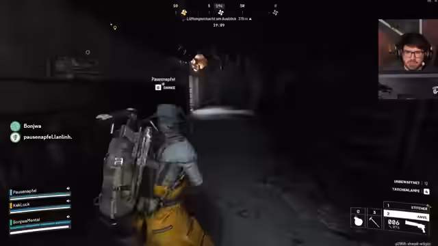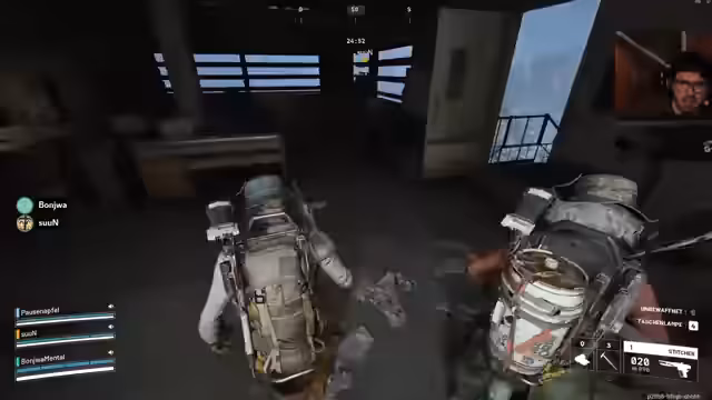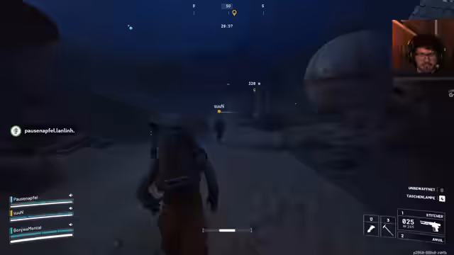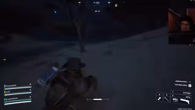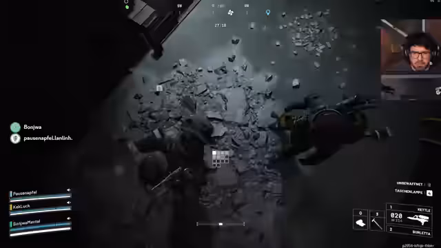 07:00:21Die Spannung steigt wieder, als auf das Team aktiv geschossen wird. Ein 'Rocketeer' wird entdeckt und es kommt zu einem heftigen Gefecht, bei dem der Streamer stirbt. Das Team muss schnell reagieren, um die Ausrüstung des gefallenen Mitspielers zu sichern. Trotz des Verlusts bleibt die Stimmung zielgerichtet, und es wird versucht, die Lage zu kontrollieren, während man weiter nach Beute sucht.