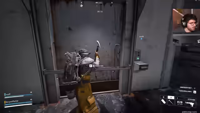 07:18:32Nachdem sie wichtige Gegenstände gesammelt haben, planen die Spieler einen riskanten Ausbruch aus dem Gebäude. Sie nutzen eine Falle, um Gegner abzulenken und versuchen, den Ausgang stealthartig zu erreichen. Eine Schockmine wird zur Sicherung der Tür eingesetzt, während sie sich durch die Flure kämpfen und auf potenzielle Hinterhalte achten.