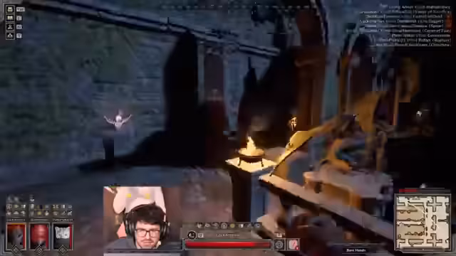 01:20:36Das Spielmodul wechselt zur Arena, die der Streamer als eines der anstrengendsten bezeichnet. Das Team wird sofort von Feuerbällen eingedeckt. In einem engen Raum kämpfen sie gegen Skelette und andere Monster, während sie gleichzeitig auf feindliche Spieler achten müssen. Es kommt zu einer riskanten Situation, in der ein Klerik aus dem Team stirbt, was die restlichen Mitspipler in eine gefährliche Position bringt. Trotzdem können sie den Raum sichern.