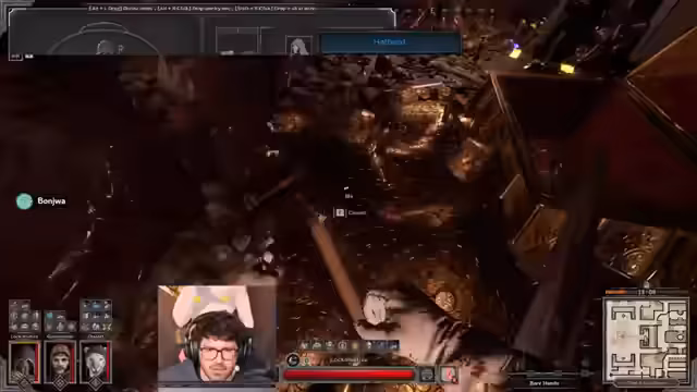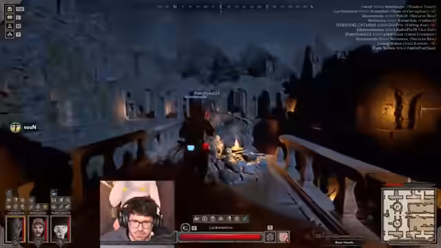 01:02:00In einem Raum mit mehreren Türen und Schritten an verschiedenen Orten gerät das Team in eine verwirrende Situation. Zuerst wird ein Barbaren getötet, doch danach tauchen weitere Gegner auf, die nicht eindeutig zugeordnet werden können. Ein stealthiger Rogue belagert die Tür und der Streamer wird im Kampf getötet. Nachdem er wiederbelebt wurde, merkt er, dass der Rogue nicht mehr da ist und vermutet einen Fallstrick. Er entscheidet sich vorsichtig, den Loot seiner Leiche zu sichern, anstatt dem vermuteten Gegner nachzujagen, um nicht in einen Falle zu tappen.