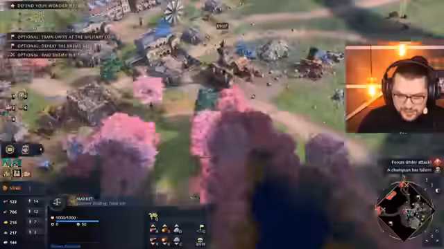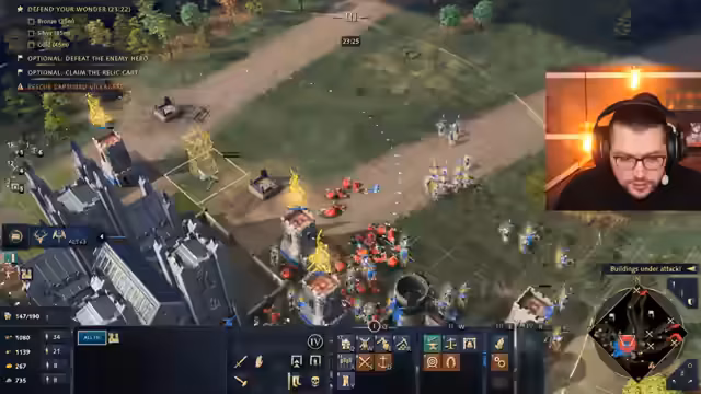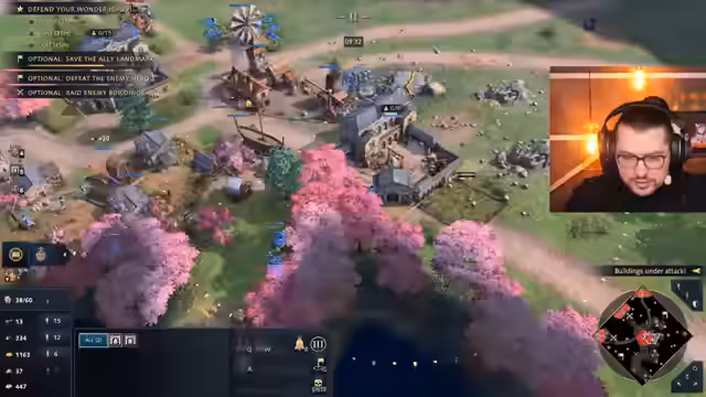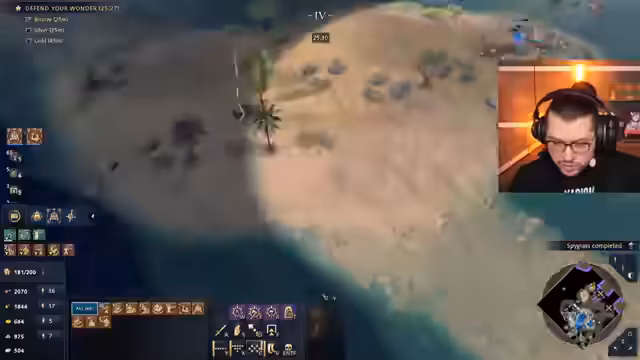 01:37:45Der Streamer beginnt das Spiel mit dem Ziel, schnell zu expandieren und Ressourcen zu sammeln. Er entdeckt verschiedene Quests, darunter das Verteidigen eines Elder Landmarks und das Besiegen eines feindlichen Helden. Die Strategie beinhaltet das schnelle Sammeln von Holz und Gold, um Fischerboote und weitere Gebäude zu errichten. Dabei stößt er auf Aquädukte und Steinressourcen, die für den Ausbau der Basis wichtig sind. Die ersten feindlichen Wellen erfordern den Bau von War Camps und die Produktion von Einheiten wie 'Boogies' und 'Managed Arms'. Der Streamer muss sich gleichzeitig um die Verteidigung seiner Basis und das Sammeln von Ressourcen kümmern, während er Upgrades für seine Einheiten und die Wirtschaft erforscht. Die Herausforderung besteht darin, die Balance zwischen Expansion, Verteidigung und dem Clearen der Karte von feindlichen Lagern zu finden, um die Goldmedaille zu sichern.