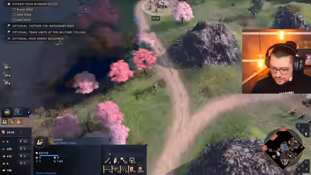 04:28:44Nachdem die Silbermedaille erreicht wurde, werden weitere Upgrades für die Villager-Produktionsgeschwindigkeit und Tragfähigkeit der Villager gewählt. Es wird die Möglichkeit in Betracht gezogen, auf den Schwierigkeitsgrad „Outrageous“ zu gehen und eine neue Zivilisation auszuprobieren. Die Wahl fällt auf die Mongolen, da sie im Late-Game stark sind und einzigartige Gebäude wie Stockyards und Ovos haben, die unendlich Nahrung liefern können. Der Spieler versucht, die Mechaniken der Mongolen zu verstehen, insbesondere wie man Gebäude bewegt und Gold generiert, was sich als schwierig erweist. Die ersten Wellen von Feinden sind herausfordernd, und der Spieler kämpft mit dem Aufbau einer effektiven Wirtschaft und Verteidigung. Es wird festgestellt, dass die Mongolen in diesem Modus möglicherweise nicht die beste Wahl sind, da ihre einzigartigen Fähigkeiten nicht optimal genutzt werden können.