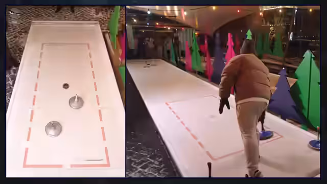 03:00:36Das Finale steht zwischen den dominierenden Teams Eddie & Budi und Edo & Radler. Die Teams stellen ihre Strategien vor und spielen einen taktisch geprägten und hochspannenden Eistock-Kampf. Nach der zweiten Runde führen Eddie & Budi klar mit 10:0. Das Niveau des Spiels ist extrem hoch, beide Teams demonrieren Präzision und Strategie.