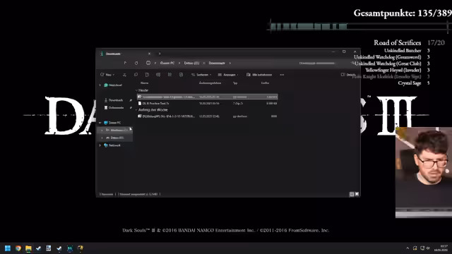 00:00:06Der Stream beginnt mit dem Einstieg in ein Dark Souls 3-Spiel. Der Streamer ist unsicher über die aktuelle Waffenausrüstung und stellt fest, dass seine vorhandenen Waffen zu wenig Schaden anrichten. Nach anfänglicher Orientierung in der Spielwelt und dem Auffinden eines Tors entscheidet er sich, direkt zum Boss Pontiff Sulyvahn zu gehen. Am Ende des Textabschnitts wird das technische Problem deutlich, dass er beim Start des Streams noch keinen Deathless-Run im Practice Tool-Modus konfiguriert hat.