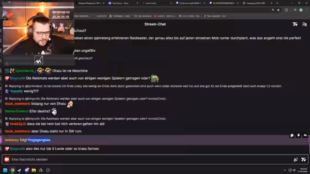 00:18:20Ein zentrales Thema des Streams ist die intensiv betriebene Raid-Vorbereitung. Der Streamer erwähnt, dass die Vorbereitung in der vergangenen Woche sechs bis acht Stunden täglich in Anspruch nahm. Dabei wird das hohe Risiko hervorgehoben, das sich aus den Verlusten von fünf Mitgliedern des Main-Raids in den letzten 48 Stunden ergibt. Dies führt zu der strategischen Überlegung, ob er einen Dungeon noch vor dem Raid wagen soll, da die Teamzusammensetzung schwach ist.