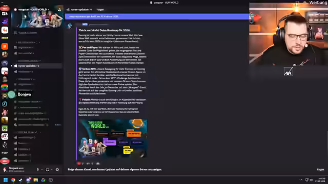 01:31:20Das Pen & Paper Event im November wird als direkte Fortsetzung der Geschichte des letzten Jahres positioniert, insbesondere in Bezug auf den Charakter Leon, der am Ende in ein schwarzes Loch gezogen wurde. Die Community wird über den Discord aktiv in die Entwicklung des Pen & Paper-Szenarios eingebunden, beispielsweise durch Challenges und Umfragen, die den weiteren Verlauf beeinflussen können. Dies schafft eine enger Bindung und gestaltet das Erlebnis für die Mitspieler und Zuschauer zu einem gemeinsamen Projekt.