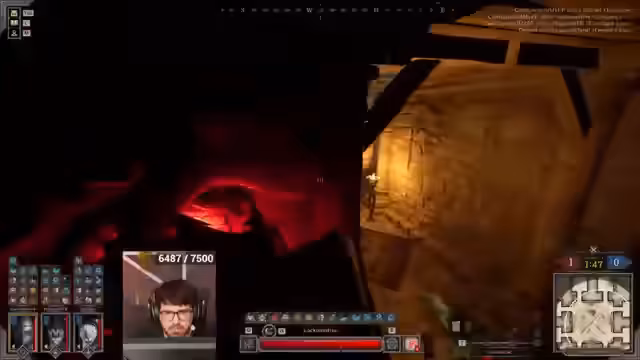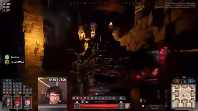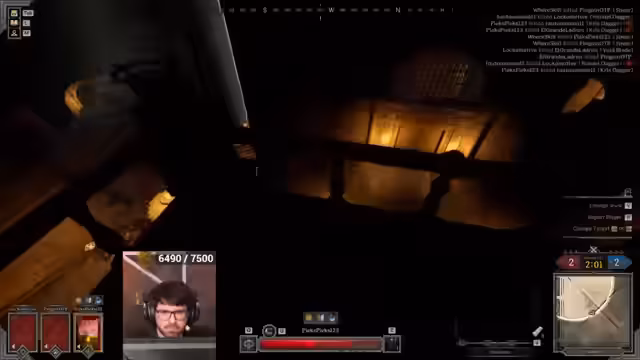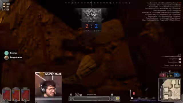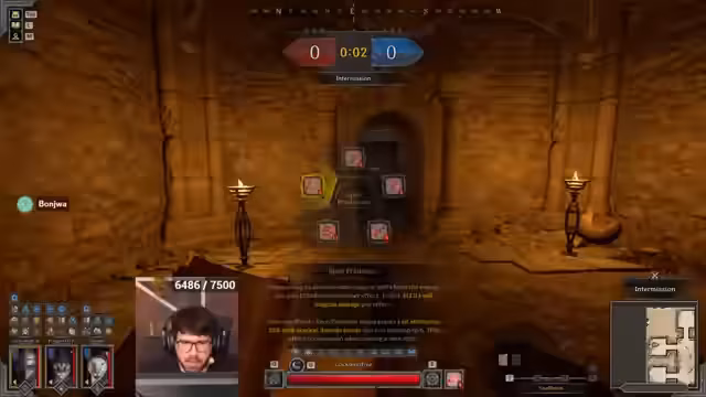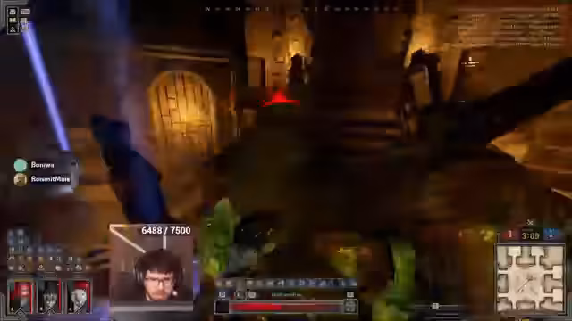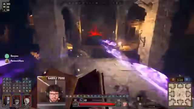 06:44:40Ein neues Match startet im Gang-Raum mit einem Team aus Warlock, Ranger und Fighter. Der Streamer plant einen Flankenangriff, indem er das Loch nutzt. Wichtig ist, den Gegner zum Vorkommen zu provozieren. Es kommt jedoch zu einem kritischen Fehler: ein gegnerischer Ranger klaut die Buffs des Streamers, was eine prekäre Situation für das gesamte Team schafft, insbesondere da der Streamer kaum Heilung zur Verfügung hat.