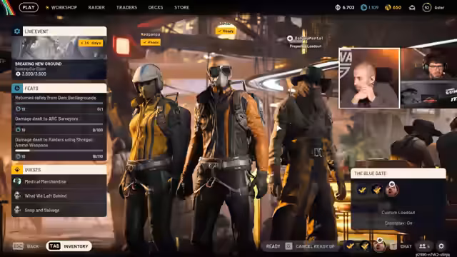 00:00:00Der Stream beginnt mit einem Raid auf der Map Bluegate. Der Fokus liegt auf einer taktischen Vorgehensweise, bei der zuerst das Inventar optimiert wird. Es werden Waffen aufgerüstet und Ausrüstungsgegenstände wie Bandagen und Schilde gekauft. Nach einer anfänglichen Phase mit Freeloadouts, die verloren gehen, wechseln die Spieler die Strategie zu einer seriösen Herangehensweise: Sie zielen auf Loot, sicheres Spielen und einen erfolgreichen Extract ab, um ihr Teamkapital zu schonen.