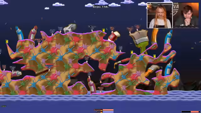 03:20:02Die Vorbereitungen für das Worms-Spiel laufen auf Hochtouren. Es wird entschieden, dass jede Seite drei Würmer hat, mit 100 Leben pro Wurm und einer Zugzeit von 45 Sekunden. Die Map wird zufällig ausgewählt und die Teams, bestehend aus Moderatoren und Community-Mitgliedern, werden offiziell ins Spiel hinzugefügt. Der Streamer benennt sein Team 'Team Bonjour' und die Spielfiguren erhalten niedliche und humorvolle Titel. Die Einstellungen für Waffen und spezielle Aktionen werden geprüft, um sicherzustellen, dass alles korrekt ist, bevor das Spiel endgültig gestartet wird.