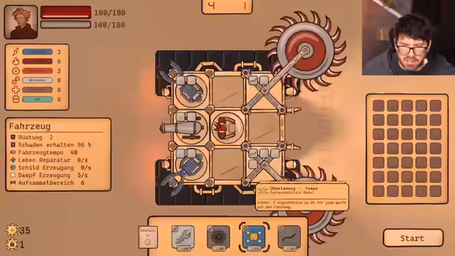 08:02:23Die Konzentration verlagert sich von reinem Farmen auf die strategische Optimierung des Fahrzeugs. Durch das Zusammenfassen von Waffen und das Platzieren von Modulen wie 'Ölkanister' oder 'Reparaturautomat' wird der Schaden und die Heilung des Fahrzeugs kontinuierlich gesteigert. Der Build-Process ist ein zentrales Gameplay-Element und ein permanentes Thema.