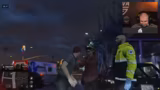 01:08:27Ein neuer Konflikt entsteht, als ein bewaffneter Passagier mit einer angeblichen 50-Kaliber-Waffe im Gespräch mit einem Kollegen erwähnt wird. Dies führt zu einem eiligen, unkoordinierten Einsatz der Polizei, bei dem der Streamer als dominanten Chef agiert, der seine Mitarbeiter unter Druck setzt. Es kommt zu einem hitzigen Streit über Kompetenzen und die Handhabung von Waffen. Der Streamer verkündet stolz, dass seine Fäuste seine primäre Waffe seien, und behauptet, er könnte sogar bewaffnete Bankräuber allein bezwingen, was seine abstrakte Rolle als 'Fäusteboss' weiter etabliert.