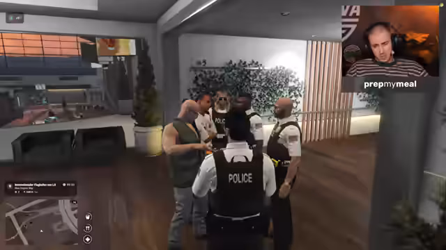 00:42:02Der Streamer startet in das GTA RP-Szenario, indem er sich am Flughafen von Los Santos befindet und dabei hilft, neue Spieler einzuchecken. Er übernimmt die Rolle eines strengen, aber auch eigenwilligen Mitarbeiters, der die ankommenden Personen mit ungewöhnlichen und humorvollen Fragen konfrontiert. Die Atmosphäre ist von Chaos und absurden Interaktionen geprägt, als ein neuer Mitarbeiter mit flirtenden Absichten auftaucht und das gesamte Arbeitsgespräch ins Absurde kippt. Der Streamer zeigt sich genervt, aber spielt die Rolle des unglücklichten Chefs, der die Situation meistern muss.